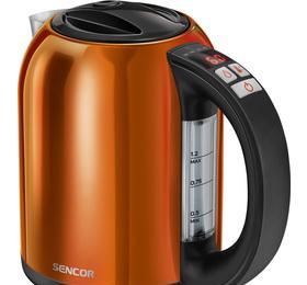 Podrobný popis výrobku SENCOR Varná konvice SWK 1273OR Chytrá rychlovarná konvice s regulací teploty o objemu 1,2 l, díky svým dokonalým funkcím a nerezovému provedení s metalickou povrchovou úpravou "Dark Orange...