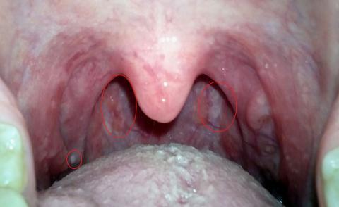 asgaroth - 18.4.2015 21:46:23 Zdravím,chcel by som počuť názor odborníka na stav mojho hrdla - približne v 3/2014 som objavil na zadnej strane hrdla ako keby biely povlak - na foto v pravom krúžku, v 10/2014 sa mi začali tvoriť ako keby zdurené červené "škvrny" - vypadá to ako zapálené - stredný krúžok...Najmenší krúžok vľavo vypadá ako mandlový kameň (neviem čo to v skutočnosti je). V 10/2014 mi bol robený aj bežný výter z hrdla - nič neobvyklé sa nenašlo, tak isto všetky výsledky v krvi som mal úplne v poriadku...Mávam občas mierne bolesti na ľavej strane hrdla (na foto tá biela plocha vpravo) a občas aj v ľavom uchu (počujem niekedy akoby praskanie). Minulý rok som bral asi 3xATB, nejaké iné problémy nemám okrem toho spomínaného mierneho diskomfortu...Prosím o zhodnotenie foto, ďakujem